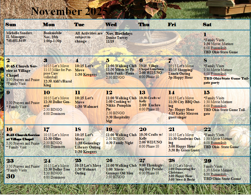 Our goal is to be a resource for the local area as well as for our residents; we offer a variety of special events and activities for entertainment as well as hosting community functions.  Potluck dinners, book clubs, garden club, volunteering, car shows, bowling, golf outings, shopping trips, card club are just a few examples of organized and resident interest driven activities.  Please see below for some of our upcoming events!